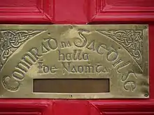 She was baptised as Deirdre and grew up in Drum, County Waterford.[6] Ita was said to embody the six virtues of Irish womanhood – wisdom, purity, beauty, musical ability, gentle speech and needle skills.[2][7] She is also reported to have rejected a prestigious marriage for a life as a consecrated woman religious. At the age of sixteen she moved to Cluain Credhail, a place-name that has ever since been known as Killeedy – meaning "Church of St. Ita" – in County Limerick, where she founded a small community of nuns and resided for the remainder of her life, in community with other consecrated women. Bishop Declan of Ardmore conferred the veil on her. Legend has it that Ita was led to Killeedy by three heavenly lights. The first was at the top of the Galtee mountains, the second on the Mullaghareirk mountains and the third at Cluain Creadhail, which is nowadays Killeedy. Her sister Fiona also went to Killeedy with her and became a member of the community.[4]