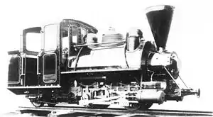 The Namaqua Copper Company's first 2 ft 6 in (762 mm) gauge locomotive, acquired in 1901, was a Dick, Kerr-built 0-4-2ST named Pioneer which was rebuilt from the 0-4-0ST configuration, possibly due to the additional weight of fuel tanks which were installed under the cab when it was converted to use fuel oil. The company also operated four more 0-4-2 tank locomotives, one 9 Ton and three 12 Ton, possibly also acquired from Dick, Kerr.[12]