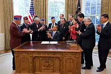 "USCIS Naturalizes 84 Members of U.S. Military in Kuwait Ceremony" (PDF). Global Law Centers. 29 June 2009. Archived from the original (PDF) on 2 March 2018. Retrieved 1 March 2009. - Steffen, Jordan (6 October 2010). "White House honors Japanese American WWII veterans". Los Angeles Times. Archived from the original on 7 October 2010. Retrieved 9 October 2010.