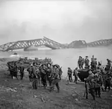 Disbanded after the war the brigade number was reactivated in the Territorial Army (TA), the British Army's part-time reserve, as the 115th Infantry Brigade shortly before the start of the Second World War, this time composed of three TA battalions of the Royal Welch Fusiliers, the 8th, 9th and 10th. The brigade spent most of the war in the United Kingdom as part of the 38th (Welsh) Infantry Division. From 2 August 1944, it formed Force 135 which was planning the reoccupation of the Channel Islands. In the event, the plan did not go ahead and the brigade left Force 135 on 30 January 1945. On 12 February, it moved to North West Europe where it remained until the end of the war serving variously under the direct command of VIII, XII and I Corps.[2]