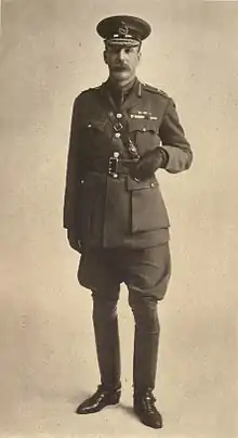 The 13th (Western) Division was formed as part of the First New Army at Salisbury Plain in August 1914. During the formation of the division, Major-General Robert Kekewich was appointed as its first commander. On 5 November 1914, while on sick leave he committed suicide.[1] Although initially meant for service in France, with the rest of the Kitchener New Armies, it was ordered to the Mediterranean as reinforcements for the Anglo-French expedition at Gallipoli.[2]