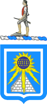 Crest: That for the regiments and separate battalions of the Army Reserve: On a wreath of the colours, argent and azure, the Lexington Minuteman proper. The statue of the Minuteman, Capt. John Parker (Henry Hudson Kitson, sculptor), stands on the Common in Lexington, Massachusetts.