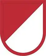 From 1961 to 1963, the Army began reorganizing its force so that each division would have a similar structure, which would vary depending on the type of division it was. This move was called the Reorganization Objective Army Division (ROAD) plan. The plan eliminated regiments but reintroduced brigades to the Army's structure, allowing three brigades to a division.[18] The reorganization also allowed for the use of "separate" brigades which had no division headquarters and could be used for missions that did not require an entire division.[19] The 173rd Brigade was selected to become a separate brigade and a special airborne task force, which could deploy rapidly and act independently.[19] It was then designed uniquely from other separate brigades. The 173rd was the only separate brigade to have support formations permanently assigned to it, though other separate brigades would receive support elements of their own a year later.[19] The brigade was also the only separate brigade to receive its own tank company,[20] in the form of Company D, 16th Armor.[21] Consistent with regimental combat teams activated before them, these separate brigades were given their own shoulder sleeve insignia.[22] The soldiers of the 173rd Airborne Brigade created a patch with a wing on it to symbolize their status as an airborne unit, along with red, white, and blue, the national colors of the United States. The SSI would be given to them in May 1963.[3][23]