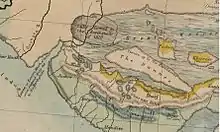 The 1819 Rann of Kutch earthquake occurred at about 18:45 to 18:50 local time on 16 June. It had an estimated magnitude ranging from 7.7 to 8.2 on the moment magnitude scale and a maximum perceived intensity of XI (Extreme) on the Mercalli intensity scale. It triggered a tsunami and caused at least 1,543 deaths.[2] The earthquake caused an area of subsidence that formed the Sindri Lake and a local zone of uplift to the north about 80 km long, 6 km wide and 6 m high that dammed the Koree / Kori / Puran / Nara river. This natural dam was known as the Allah Bund ("Dam of God").