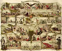 "Centennial Mirror", showing events from 1776 (left) compared with similar events in 1876 (right)