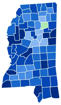 | Noxubee | 492 | 91.28% | 2 | 0.37% | 44 | 8.16% | 1 | 0.19% | 448 | 83.12% | 539 |