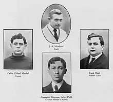 | Calvin Marshall^ | tackle | 10 | 6' 1" | 200 | 1908 | Gloucester H.S. (MA) | Doctor of Medicine | Mt. Oliver, PA | |