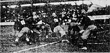 Ten thousand fans spent their Thanksgiving Day at Exposition Park watching the tenth meeting between State College and WUP on the gridiron. The Pittsburgh Daily Post described the scene: "The greatest football day in this city in the history of the fascinating college sport resulted yesterday in a splendid victory for the Western University of Pennsylvania over Pennsylvania State College by a score of 6-0... Thousands were gladdened by the bright rays of the sun, whose face the weatherman had predicted would not show. Gaily attired girls and matrons brilliant with colors of their favorite college added splendor to the scenes of the contest. In the right field bleachers were grouped the hundreds of leather-lunged students of Western Pennsylvania. A brass band kept up the encouragement to the tiring players when the students rested their throats. Fire crackers, megaphones, crickets, bells and other ear-splitting noise producers were ever to be heard."[10] Even though they were on a two-game losing streak, the State College contingent was confident of victory since they had won eight of the previous nine games against WUP. The WUP team was hoping to prove that it was better than its showing against Washington & Jefferson.