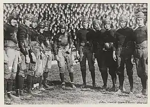 The 1920 California Golden Bears football team was an American football team that represented the University of California, Berkeley in the Pacific Coast Conference (PCC) during the 1920 college football season. In their fifth year under head coach Andy Smith, the team compiled a 9–0 record (3–0 against PCC opponents), shut out seven of nine opponents, won the PCC championship, defeated Ohio State in the 1921 Rose Bowl, and outscored its opponents by a combined total of 510 to 14.[1][2] The team was retroactively selected as the national champion by the College Football Researchers Association, Helms Athletic Foundation, Houlgate System, National Championship Foundation, and Jeff Sagarin.[3]