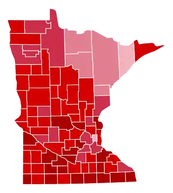 Harding became the second and last presidential nominee after Theodore Roosevelt in 1904 to sweep all Minnesota’s counties. This was the last time the Republicans won Red Lake County until George Bush junior in 2000[12] and the last time Mahnomen County voted Republican until Ronald Reagan in 1980.[13]