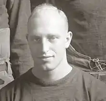Lynn Bomar and Jess Neely are often acknowledged as the players of the game for Vanderbilt.[59] Lynn Bomar spent much of his day tackling Michigan's runners for a loss,[60] and "tore through the Wolverine line constantly, and always emerged after a play on the far side of the defense."[56] while Jess Neely was a battered and bruised captain playing so hard despite his injured frame.[43][60][n 2] Other plays of note for the Commodores included the shifty moves of Gil Reese—Reese made 105 yards on punt returns.[61] The yearbook spoke of Reese's play, "Time after time Gil Reece caught punts, and shifting from side to side in a most elusive fashion, would run almost through the Michigan team, by a hair's breadth, escaping each hand outstretched to seize him. He resembled old Lewis Hardage, who taught him that shifty trick." Scotty Neill's punting matching that of Kipke,[62] with an average of 42 yards per punt,[45] was also of note. The defense of Tex Bradford and Tot McCullough received praise.[43][44][56][60] Walter Camp noted the strong showing of Vanderbilt, particularly impressed with Reese's punt returns and McCullough's run defense. He credited McGugin with having developed a well-trained line, and a secondary that was not far behind.[63]