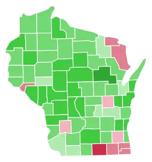 La Follette carried 62 of Wisconsin’s 72 counties, with Coolidge gaining majorities only in the heavily Yankee and pro-establishment counties bordering Illinois, in Pepin County on the western border, and in Marinette and Florence Counties bordering Michigan.