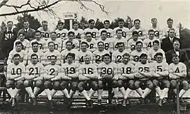 ![]() The 1932 squad was the first New Hampshire Wildcats football team to appear in The Granite wearing numbers on the front of their uniforms. | |