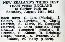Auckland, who were also coached by Bill Kelly, lost to Great Britain 19–14. The Auckland team was; Norm Campbell, Pat Meehan, Ben Davidson, Claude List, Bert Cooke, Hec Brisbane, Wilf Hassan, Stan Clark, Gordon Campbel, Lou Hutt, Alan Clarke, Ray Lawless and Trevor Hall. Reserves; Allan Seagar, Len Scott and Neville St George.[1]