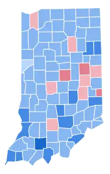 This is the only occasion since the Civil War that Steuben County has voted for a Democratic Presidential candidate,[5] and as of the 2020 presidential election, this is the last election when Fulton County, Jasper County, Kosciusko County, Morgan County and Newton County backed a Democrat for President.[6]