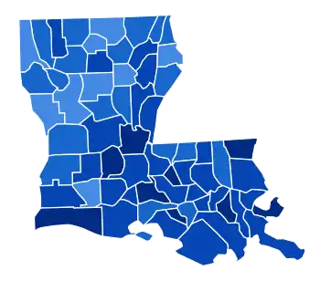 As of the 2020 presidential election, this is the last occasion when Bossier Parish has voted for a Democratic Presidential candidate.[3] Plaquemines Parish and Lincoln Parish have both voted for a Democratic Presidential candidate only once since – for Bill Clinton in 1996 – whilst Caddo Parish and Claiborne Parish would never vote Democratic again until Clinton in 1992.[3]