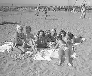 Girls sunbathing at Cabrillo Beach, California, Dec. 28, 1947