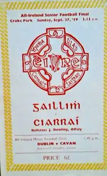 The 1959 All-Ireland Senior Football Championship Final was the 72nd All-Ireland Final and the deciding match of the 1959 All-Ireland Senior Football Championship, an inter-county Gaelic football tournament for the top teams in Ireland.