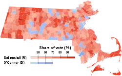 Saltonstall defeated O'Connor 1,358,556 votes to 1,050,725 to hold on to his Senate seat.[10]