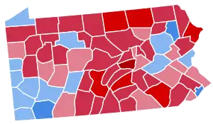 Pennsylvania narrowly voted for the Democratic nominee Senator Kennedy over the Republican nominee, Vice President Richard Nixon. Kennedy won Pennsylvania by a slim margin of 2.32%, being aided rather than hindered by his Catholic faith owing to the numerical power of his co-religionists in urban Philadelphia, Lackawanna County, and in the industrial areas around Lake Erie.[6] This clearly outnumbered anti-Catholic sentiment in rural areas, which caused him to lose ground vis-à-vis Adlai Stevenson in 16 rural counties.[6]