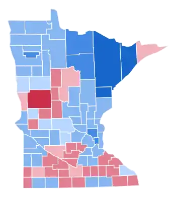 Until 2016, this was the last presidential election in Minnesota where any county was won with over seventy percent of the popular vote. In 2016, Donald Trump carried Morrison County with 73% of the vote, and Todd County with 70.75% of the vote. In this case, Humphrey won the following counties over this threshold: Carlton County, Lake County, and Saint Louis County.