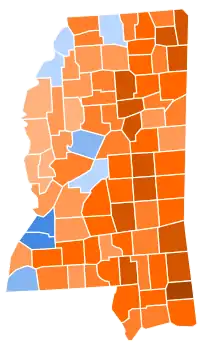 As of the 2020 presidential election, this is the last election in which the following counties did not vote for the Republican presidential candidate: Forrest, Lowndes, Lamar, Lauderdale, Lincoln, Newton, Rankin, Scott, Simpson, Harrison, Jackson, Choctaw, Jones, and Smith.[18] It is also the last election in which the Republican nominee won the presidency without carrying Mississippi.