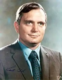 Expecting to benefit over the uproar in Florida over the rejection of Judge Carswell, political aides suggested that Carswell resign from the bench and run for Holland's Senate seat.[18] Carswell agreed and declared his candidacy while accompanying Governor Kirk in front of reporters in Miami on April 20. Initially, Lieutenant Governor Ray C. Osborne was challenging Cramer for the Republican nomination, but dropped out after Carswell entered the race. Years later, Kirk expressed regret for encouraging Carswell to run and Osborne to withdraw.[20] It is possible that Cramer and Gurney came to an agreement in which Gurney would run for Senate in 1968 and allow Cramer to run in 1970. However, Carswell and Gurney denied having any knowledge of the deal.[18] Although Nixon encouraged Cramer to run, he would not voice support for either Carswell or Cramer during the primary contest. Carswell was endorsed by nationally known actors John Wayne and Gene Autry,[19] as well as Governor Kirk and Senator Gurney.[18]