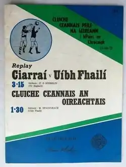 2. Fogarty, John (12 September 2019). "Replay readings suggest this will be tight, with a busy referee". Irish Examiner. Retrieved 12 September 2019. The 1972 final replay loss to Offaly was the last time Mick O'Connell and Mick O'Dwyer played in Croke Park.