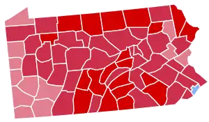 Pennsylvania strongly voted for the Republican nominee, President Richard Nixon, over the Democratic nominee, Senator George McGovern. Nixon won Pennsylvania by a large margin of 19.98%, winning every county except for Philadelphia. This result nonetheless was over 3% more Democratic than the nation at-large. As of the 2020 presidential election, this is the last election in which Allegheny County voted Republican,[1] and the last time that that county did not vote the same as Philadelphia. As of 2020, this marked the last time when the Republican presidential nominee carried the state by more than 10 percentage points and the most recent time when any presidential candidate won the state by over 15 points.