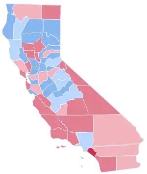 | Los Angeles | 47.78% | 1,174,926 | 49.69% | 1,221,893 | 2.53% | 62,258 | -1.91% | -46,967 |