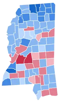 As of the 2020 presidential election, this is the last time a Democrat won the state of Mississippi, as well as Hancock County, Neshoba County, DeSoto County, Carroll County, Covington County, Pearl River County, George County, Wayne County, Stone County, Greene County, Perry County, and Webster County.[2] This is also the last time that the state voted Democratic for Senator and President simultaneously.