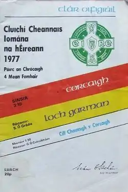 The 1977 All-Ireland Senior Hurling Championship Final was the 90th All-Ireland Final and the culmination of the 1977 All-Ireland Senior Hurling Championship, an inter-county hurling tournament for the top teams in Ireland. The match was held at Croke Park, Dublin, on 4 September 1977, between Cork and Wexford. The Leinster champions lost to their Munster opponents for a second consecutive year on a score line of 1-17 to 3-8.