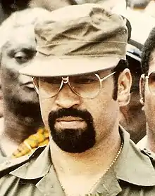 The 1980 Surinamese coup d'état, usually referred to as the Sergeants' Coup (Dutch: De Sergeantencoup), was a military coup in Suriname which occurred on 25 February 1980, when a group of 16 sergeants (Dutch: groep van zestien, lit. 'group of sixteen') of the Surinamese Armed Forces (SKM) led by Dési Bouterse overthrew the government of Prime Minister Henck Arron with a violent coup d'état.[1] This marked the beginning of the military dictatorship that dominated the country from 1980 until 1991. The dictatorship featured the presence of an evening curfew, the lack of freedom of press, a ban on political parties (from 1985), a restriction on the freedom of assembly, a high level of government corruption and the summary executions of political opponents.[2]