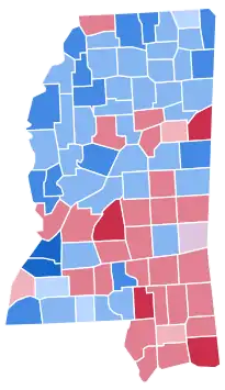 Mississippi was won by former California Governor Ronald Reagan (R) by a slim margin of 1.33%.[1] However, in future elections, the state would become a Republican stronghold, and no Democratic presidential candidate has carried the state since Jimmy Carter in 1976. As of the 2020 presidential election, this is the last election in which Winston County, Tippah County, Itawamba County, Union County, Prentiss County, Pontotoc County, Lee County, Lafayette County, Attala County, Monroe County, Madison County, Calhoun County, Tate County, Marion County, Leake County, Grenada County, and Franklin County voted for the Democratic candidate, as well as the last time that Clarke County was not carried by the Republican candidate.[2]