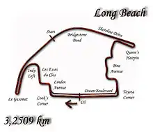 When the teams arrived in the Los Angeles area town of Long Beach, the demanding and tight street circuit had been slightly modified from the year before- the second left-hander on Pine Avenue had been made a single-apex corner instead of a double-apex.