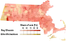 Despite his early lead in polls, Richardson failed to win the Republican nomination. Shamie easily won the September 18 primary with over 60% of the vote. Richardson only managed to carry a few municipalities in the Berkshires, Cape and Islands region, and Boston's wealthy suburbs. Richardson also won the liberal college towns of Amherst and Cambridge.