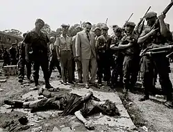 The Argentine president of the time, Raúl Alfonsín declared that the attack, which carried the ultimate goal of sparking a massive popular uprising, could have led to a civil war.[1] Given a life sentence and imprisoned, as his comrades, in high security quarters, Gorriarán Merlo was eventually freed in 2003.[2][3] He died on 22 September 2006 while awaiting surgery for an abdominal aortic aneurysm.