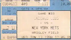 A ticket for a 1990 game between the New York Mets and the Chicago Cubs.