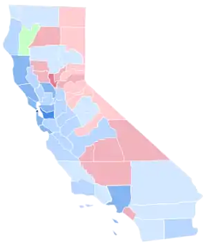 It was the first occasion San Diego County had voted for a Democrat since Franklin D. Roosevelt in 1944, and the last time any of the following counties have given a plurality to the Democratic nominee: Del Norte, Siskiyou, Tehama, Plumas, Tuolumne and Mariposa.[2] Ross Perot gained a plurality in Trinity County, the only time a third-party candidate has carried any county in the state since Progressive Party candidate Robert La Follette Sr. in 1924.
