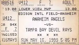 A ticket for a 1999 game between the Devil Rays and the Anaheim Angels.