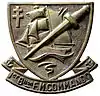 In March 1944, the battalion received its official designation,[6] and in May 1944, a few weeks before the Normandy landings, they received their own badge consisting of an ecu of bronze charged with a brig (representing adventure) and the barred dagger of the Commandos with, in the sinistral corner, the Cross of Lorraine and underlined by a streamer carrying the inscription "1er Bn F.M.Commando". The green beret was worn in the British fashion, pulled right with badge over the left eye or temple.[7] The battalion was initially assigned to No.4 Commando of the British Army's 1st Special Service Brigade, serving as its 5th and 6th Troops.