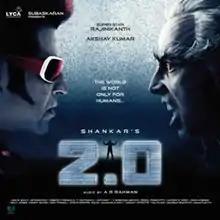 2.0 is the soundtrack album and score for the 2018 Indian Tamil science fiction action film of the same name. A. R. Rahman composed the feature film soundtrack and background score. The lyrics for the songs has been penned by Madhan Karky, Na. Muthukumar in Tamil.