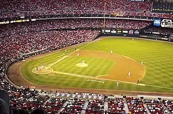 The season's eventual National League Central Division champions St. Louis Cardinals playing host to the Chicago Cubs during a September 2000 game at Busch Memorial Stadium.