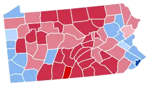 Pennsylvania was won by Vice President Al Gore by a 4.17% margin of victory. However, voter enthusiasm for both candidates was generally low throughout the campaign. Gore failed to capture Clinton's appeal in strongly Democratic regions such as Pittsburgh and Scranton, and thus carried these areas by a smaller number than his predecessor. However, opposition to George W. Bush was particularly strong in the suburban counties of Philadelphia; although these areas at the time were typically Republican leaning, they featured a strong culturally liberal bent, and thus Bush was unable to appeal to voters. Bush support was particularly strong in rural, central Pennsylvania, where the Texas Governor appealed to Evangelical voters and where Gore's connection to gun control policies was strongly rejected. Marginal wins in both of the state's metropolitan areas helped the Vice President to capture the state.[1] This was the first election since 1968 that the candidate who won Pennsylvania did not win the general election, and only the fourth time that has happened since 1916. As of the 2020 presidential election, this is the last election in which Greene County, Mercer County, and Lawrence County voted for the Democratic candidate.