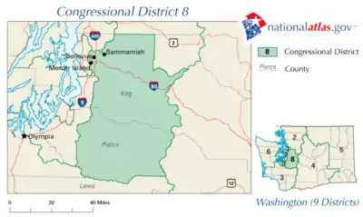 This district has been represented by Democratic Congressman Adam Smith since he was first elected in 1996. Covering the densely populated area from the suburbs of Seattle to the northern portion of Olympia, the district has a moderately liberal population with a tendency to support Democratic candidates. Congressman Smith did not face a serious challenge from Republican Paul Lord and Green Party candidate Robert Posey and was re-elected to a fifth term with ease.