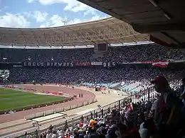 Cairo International Stadium, formerly known as Nasser Stadium, is an Olympic-standard, multi-use stadium with an all-seated capacity of 75,000.[1] The architect of the stadium is the German Werner March, who had built from 1934 to 1936 the Olympic Stadium in Berlin. Before becoming an all seater stadium, it had the ability to hold over 100,000 spectators, reaching a record of 120,000. It is the foremost Olympic-standard facility befitting the role of Cairo, Egypt as the center of events in the region. It is also the 69th largest stadium in the world. Located in Nasr City; a suburb north east of Cairo, it was completed in 1960, and was inaugurated by President Gamal Abd El Nasser on 23 July that year, the eighth anniversary of the Egyptian Revolution of 1952. Zamalek SC currently use the Petro Sport Stadium for most of their home games and Al Ahly use Al Salam Stadium for most of their home games.