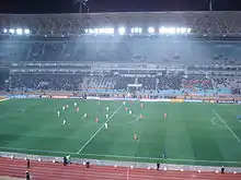 7 November Stadium is a multi-purpose stadium in Radès, Tunisia about 10 kilometers south-east of the city center of Tunis, in the center of the Olympic City. It is currently used mostly for football matches and it also has facilities for athletics. The stadium holds 60,000 and was built in 2001 for the 2001 Mediterranean Games and is considered to be one of the best stadiums in Africa. The stadium was built for the 2001 Mediterranean Games, the 60,000-seat covered area covers 13,000 m2 and consists of a central area, 3 adjoining grounds, 2 warm-up rooms, 2 paintings and an official stand of 7,000 seats. The press gallery is equipped with 300 desks.