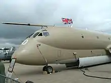 The aircraft involved in the accident was XV230, the first of 38 Nimrod maritime reconnaissance/strike aircraft to enter operational service with the Royal Air Force on 2 October 1969.[1][2] At a ceremony held at Woodford airfield in Cheshire, the aircraft was handed over by the deputy managing director of Hawker Siddeley Aviation, Sir Harry Broadhurst. Receiving XV230 were the AOC-in Chief of Coastal Command, Air Marshal Sir John Lapsley. At Broadhurst's invitation, Lady Lapsley performed the naming ceremony. Later in the day an RAF crew flew XV230 to its base at RAF St Mawgan, Cornwall, where the Nimrod maritime operational training unit (MOTU) was to be formed.[3]