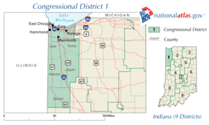 This district is located in Northwest Indiana and borders Chicago. The district has been one of the most Democratic in Indiana.
