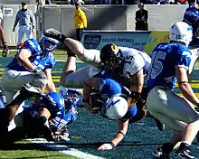 Falcons quarterback Shaun Carney falls into the end zone for a first-quarter touchdown.
